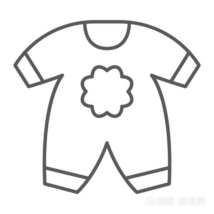 婴儿衣裤细线图标, 孩子和衣服, 身体礼服标志, 矢量图形, 在白色背景的线性图案