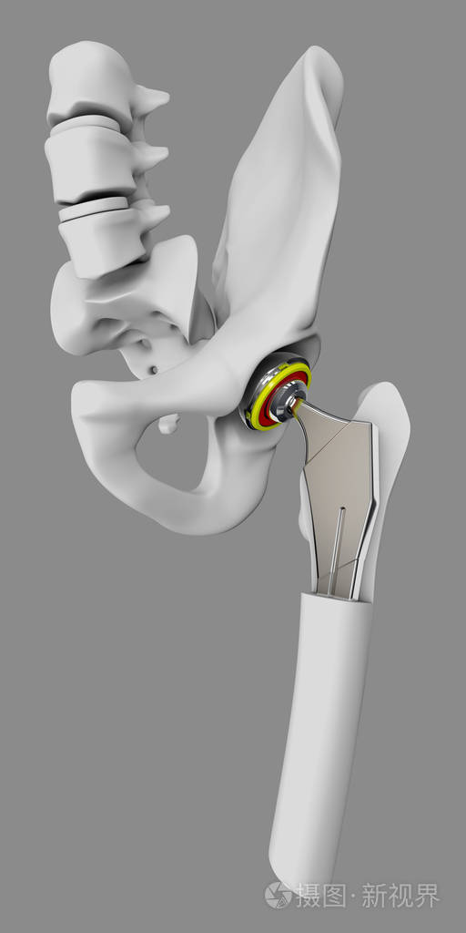 髋关节置换, 人工关节隔离灰色3d 插图