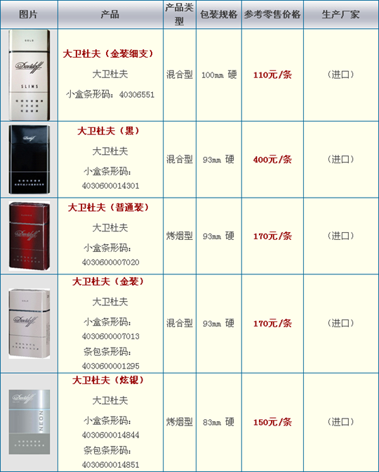 求这款香烟(大卫杜夫davidoff)详细情况,