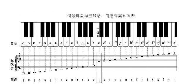 教程1-1钢琴键盘与音名唱名简谱对照表