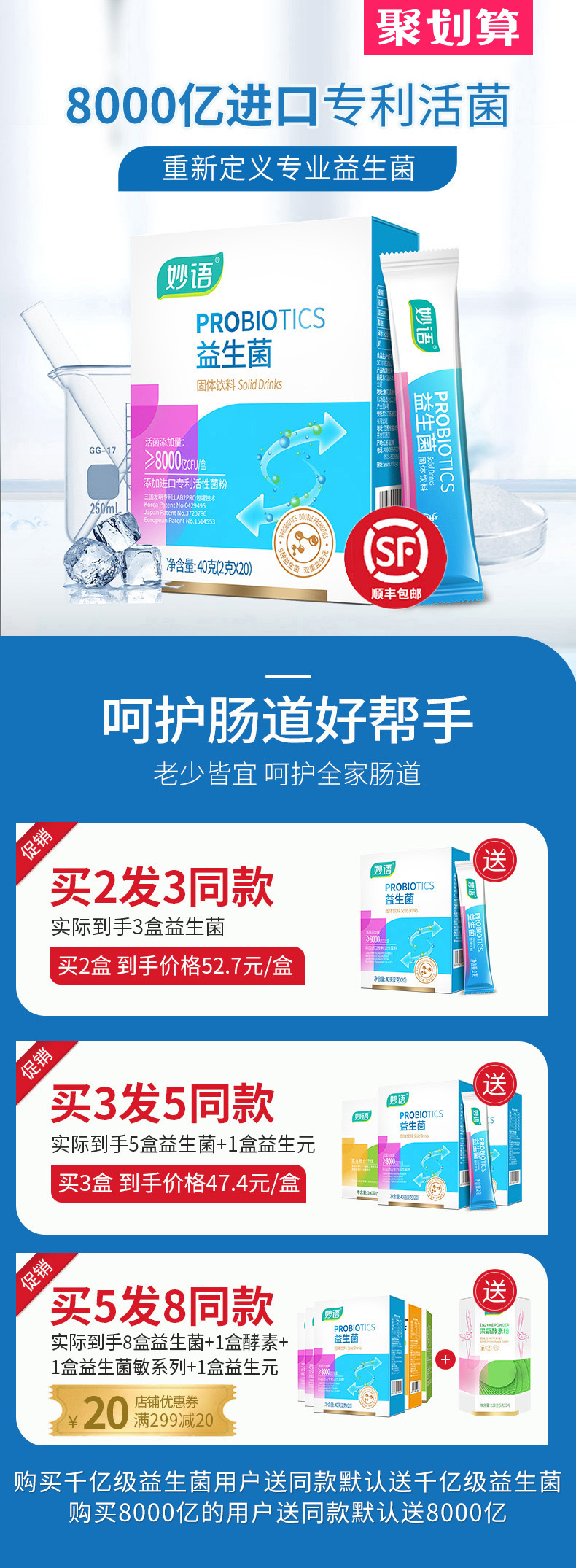 每盒超8000亿活菌:妙语 益生菌 20包