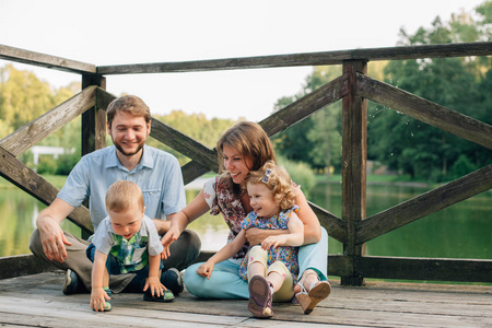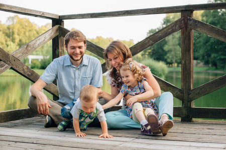 快乐一家七口的肖像