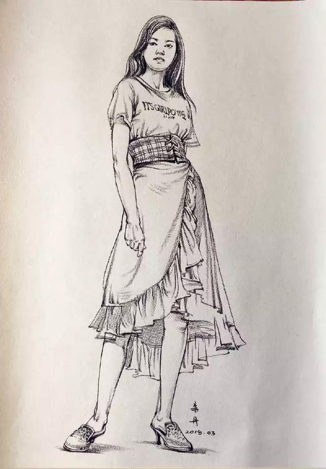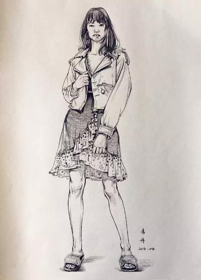 时尚小姐姐速写示范,临摹起来吧!作者: 朱丹速写