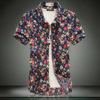 诗索曼2014夏装潮男大码个性短袖花衬衫