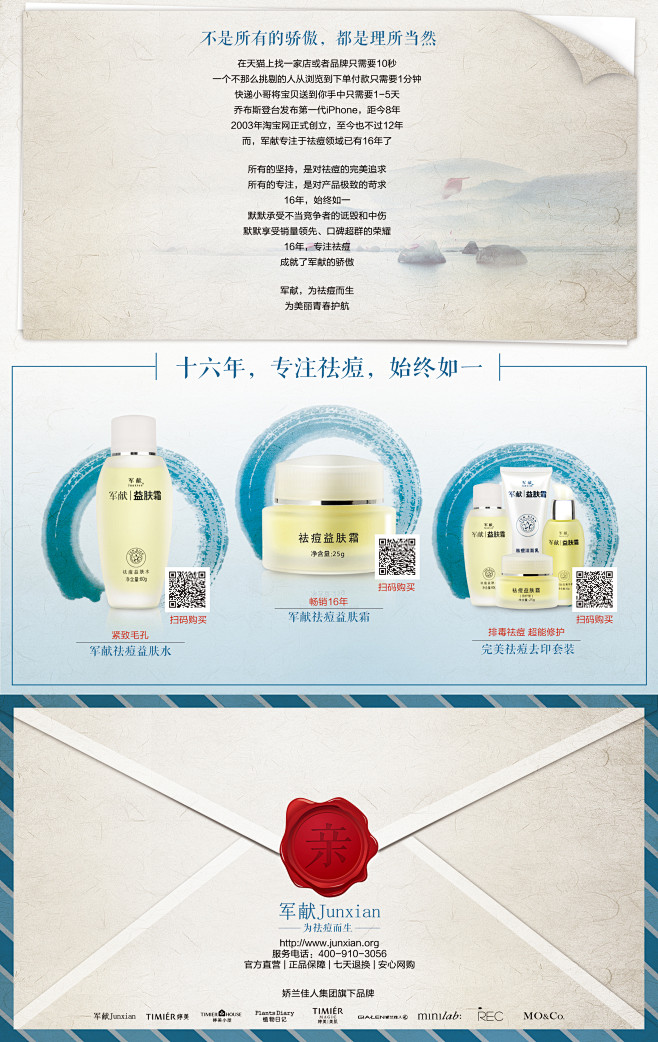 简介:军献隶属于广州娇兰化妆品有限公司。其初创于1999年,是由国内著名军医及医学美容皮肤专家牵头,经过多年