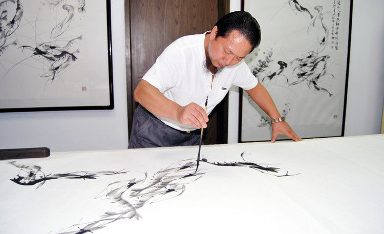 供应伍建丰神来之笔!金陵虾王水墨虾画】