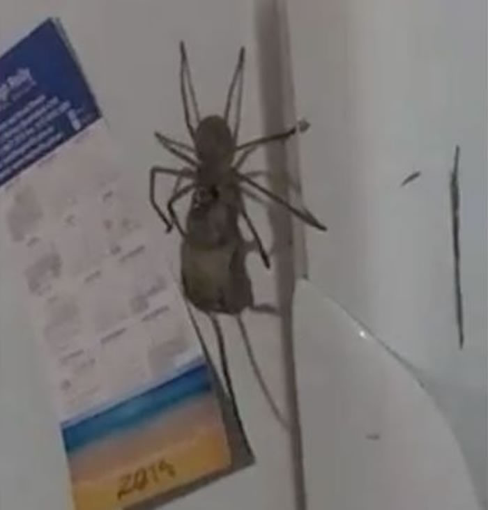 澳洲居民在家中拍到巴掌大蜘蛛叼着一只