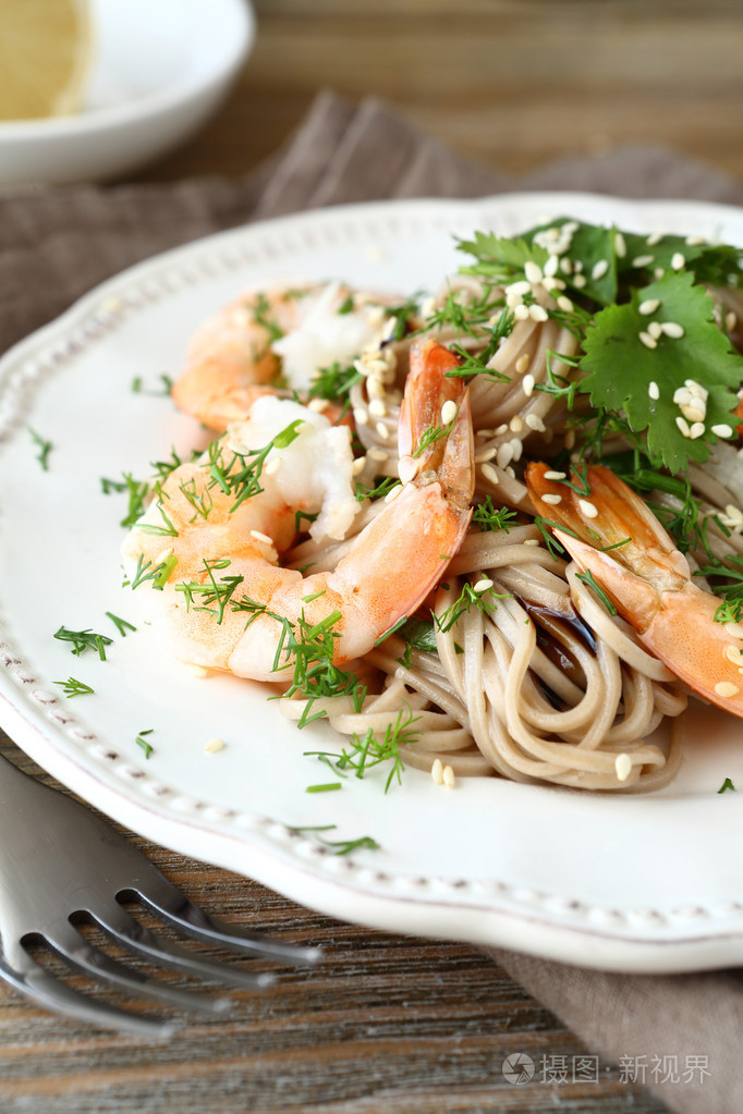 荞麦面条虾仁
