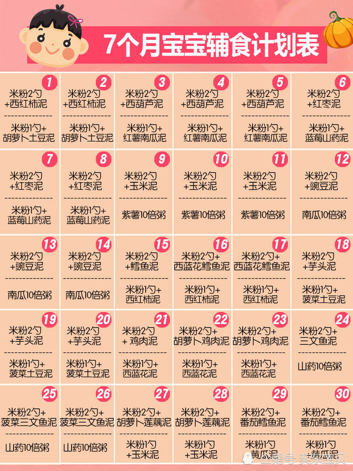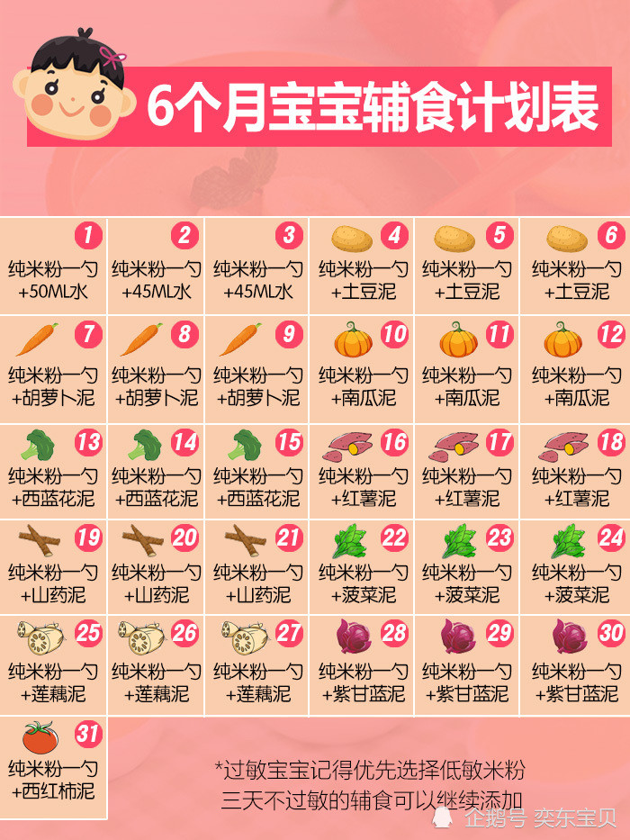 6-12月宝宝辅食表,婴儿辅食添加时间顺序表!精细到每一天!