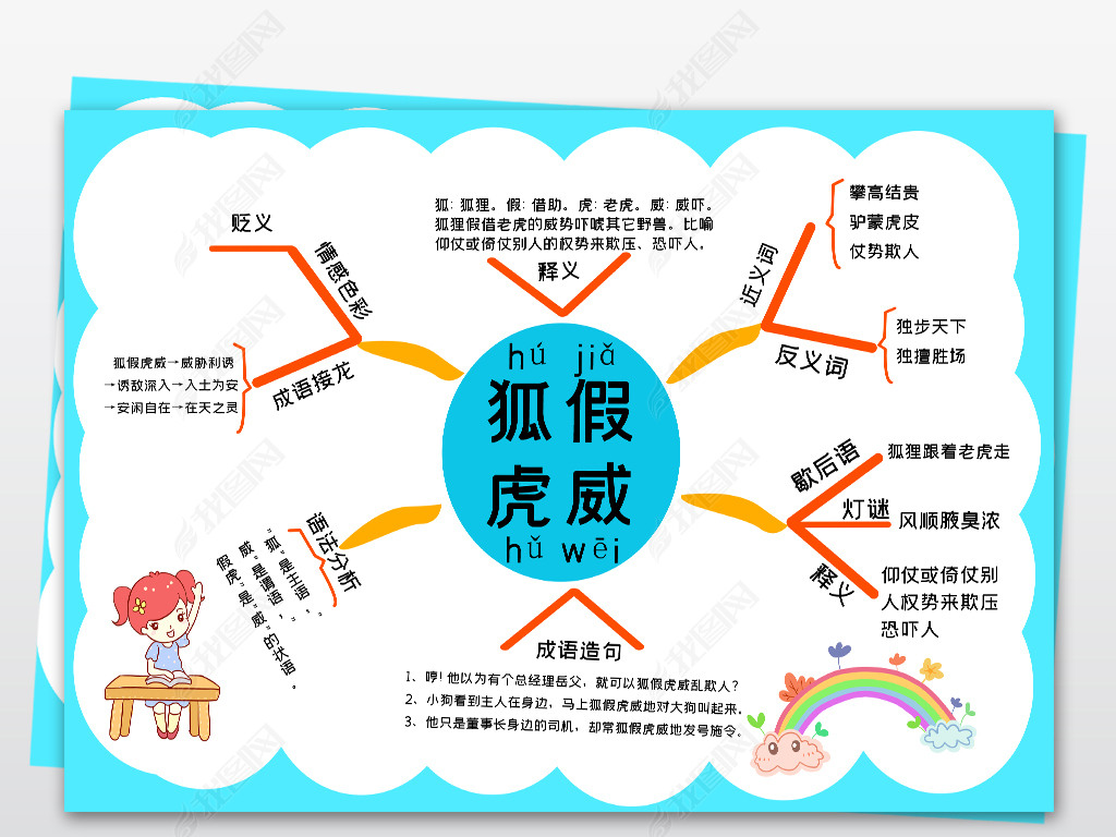 小学三年级上册寓言狐假虎威故事小报思维导图模板