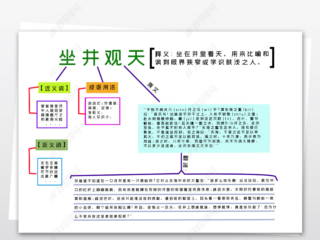 小学生简单好看漂亮思维导图寓言坐井观天
