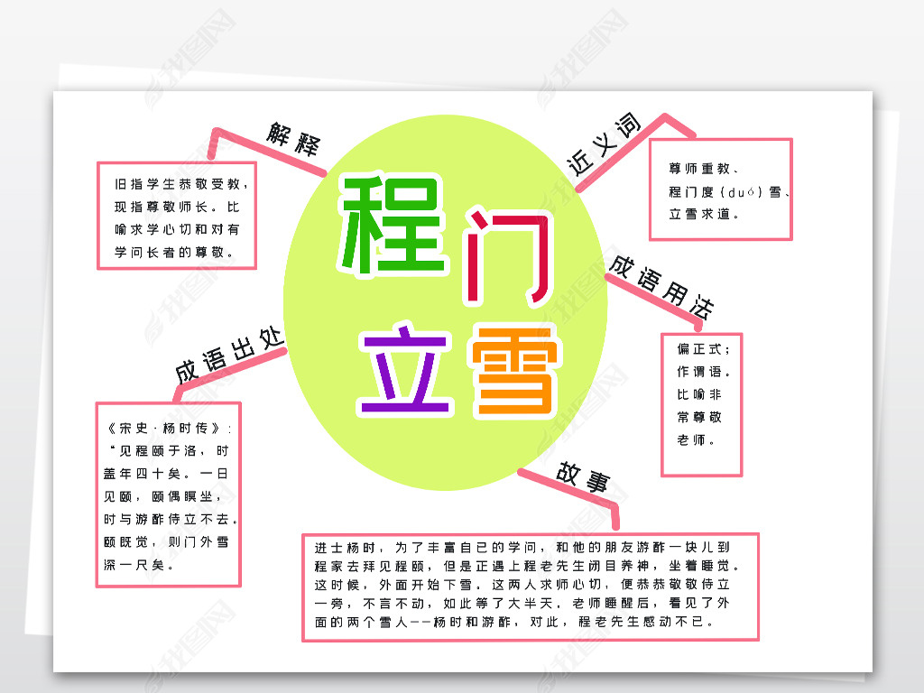 思维导图寓言道理成语故事程门立雪阅读手抄报小报