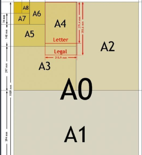 纸张大小规格A0,A1,A2,A3,A4,A5,A6,A7,A8
