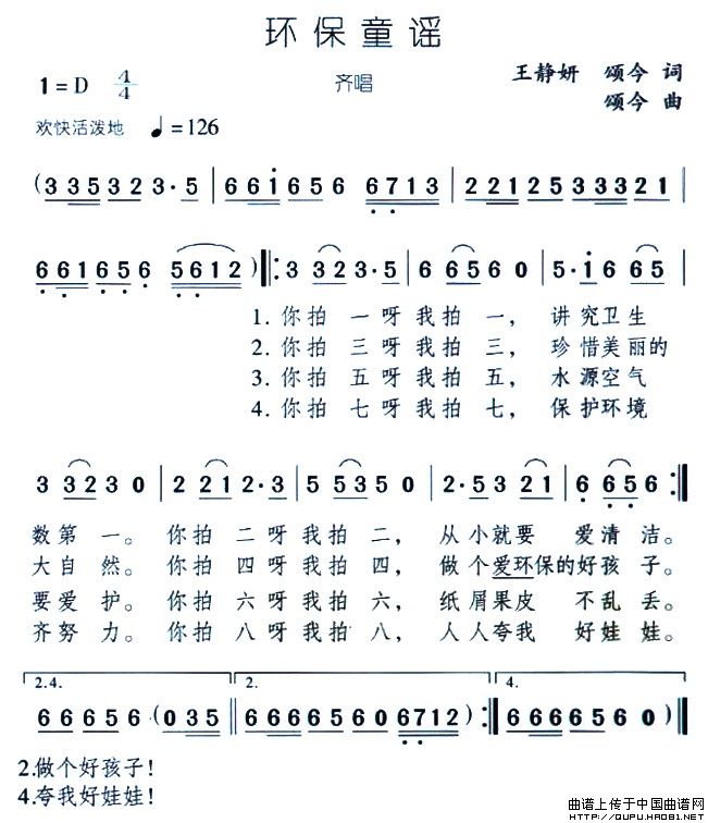 曲谱:环保童谣