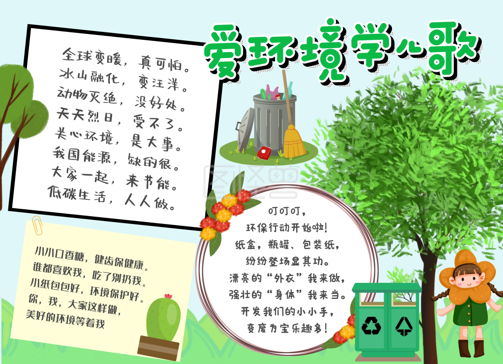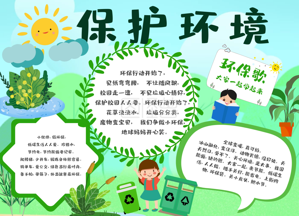 爱环境学儿歌环保绿色卡通手抄报