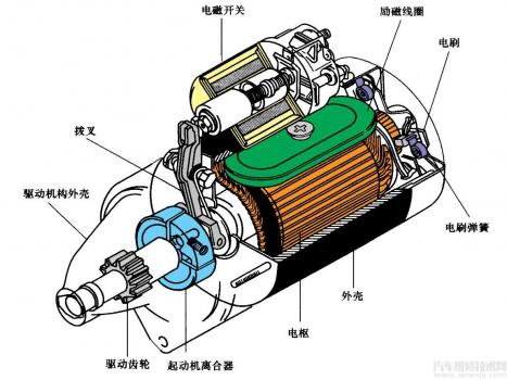 不同类型汽车起动机构造图、工作原理图(高清图解)