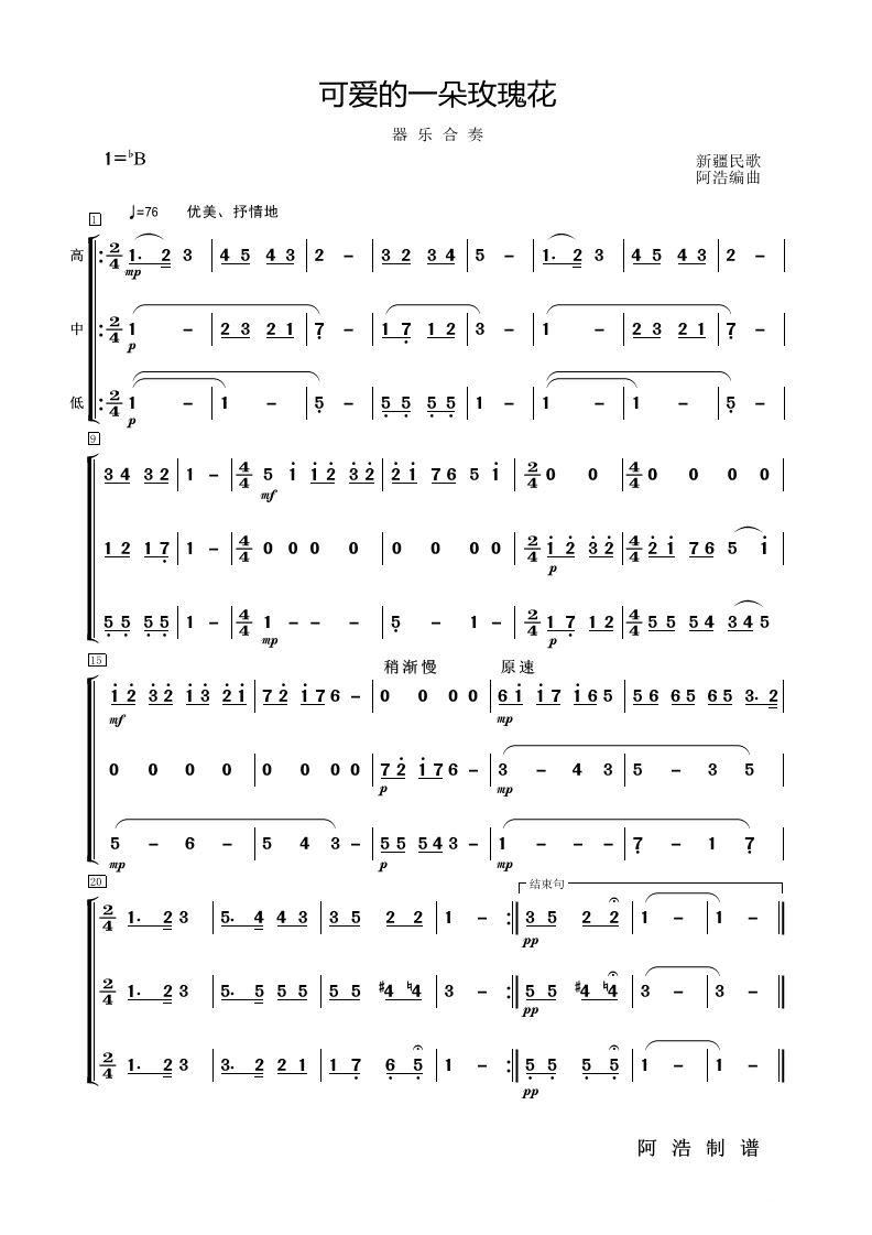 可爱的一朵玫瑰花器乐合奏歌谱简谱