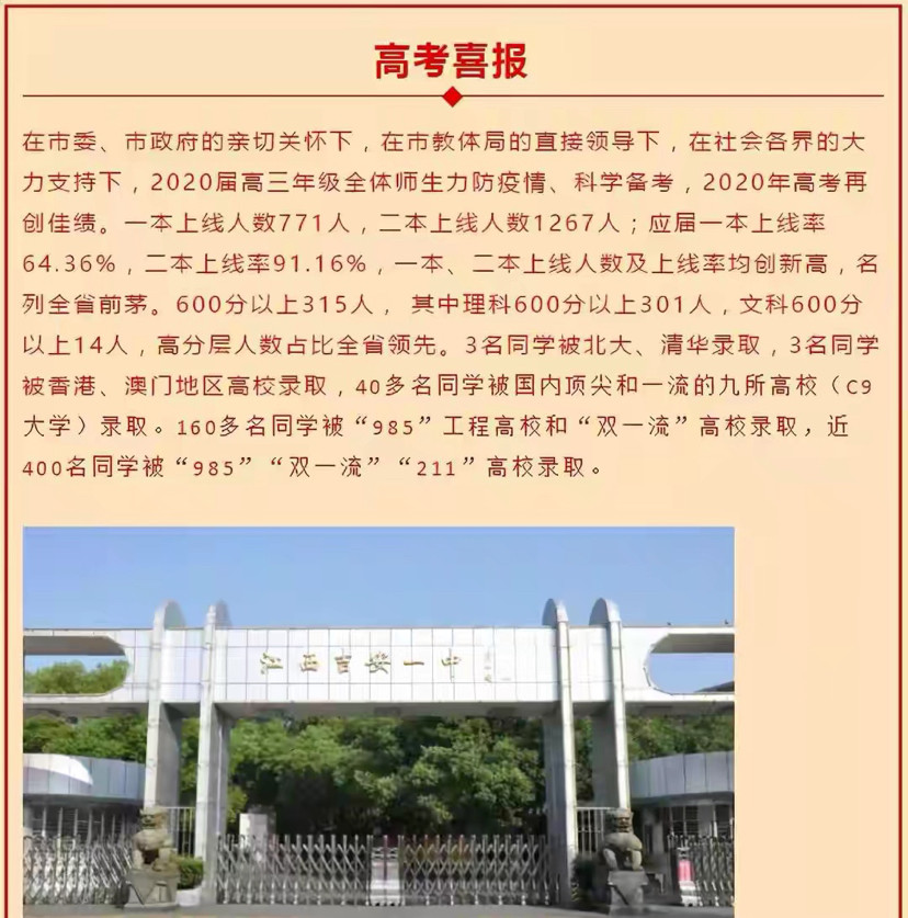 江西省4大重点高中,临川一中位居榜首,鹰潭