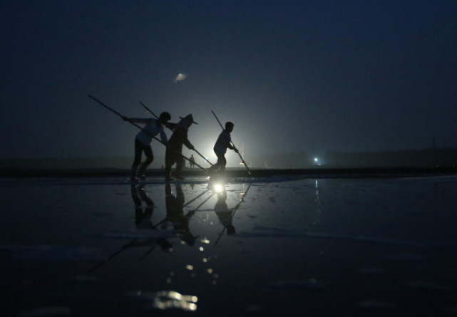 “盐热” 泉港山腰盐场工人们忙碌晒盐(组图)