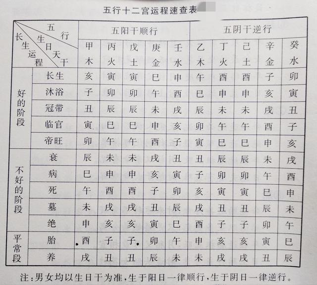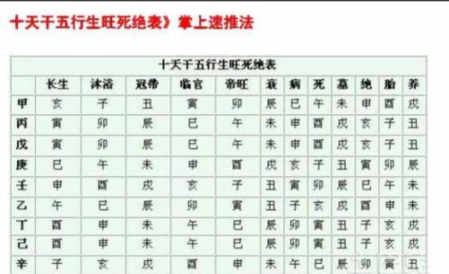 十二长生表、十二长生掌诀图、五行十二宫运程表解读
