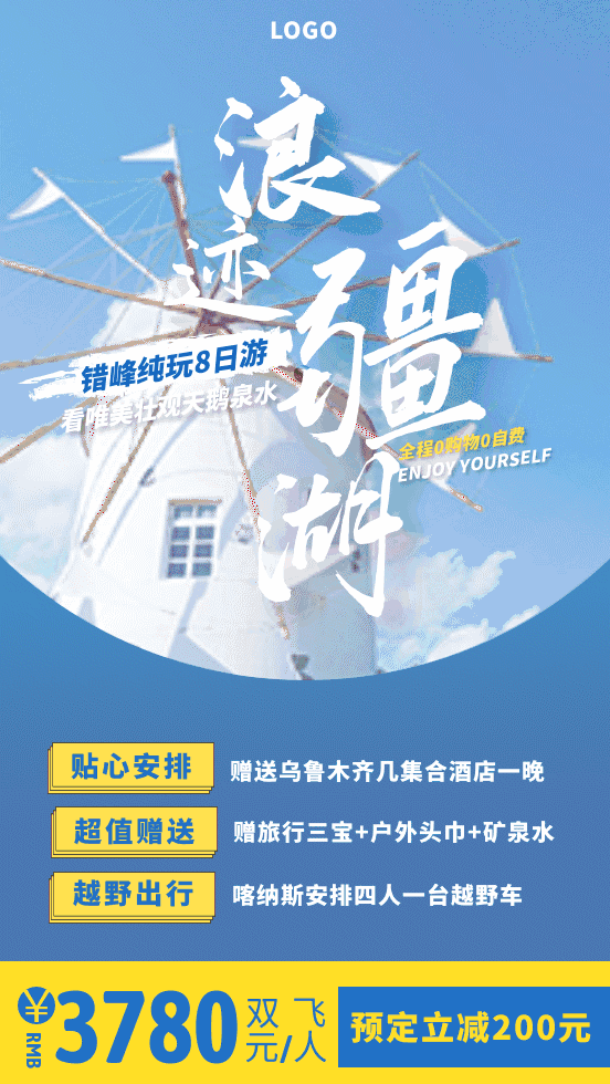 蓝色质感旅游旅行出游新疆游特惠GIF模板