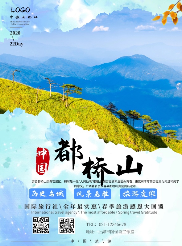 都桥山旅游旅行社风景区文旅水彩大山宣传