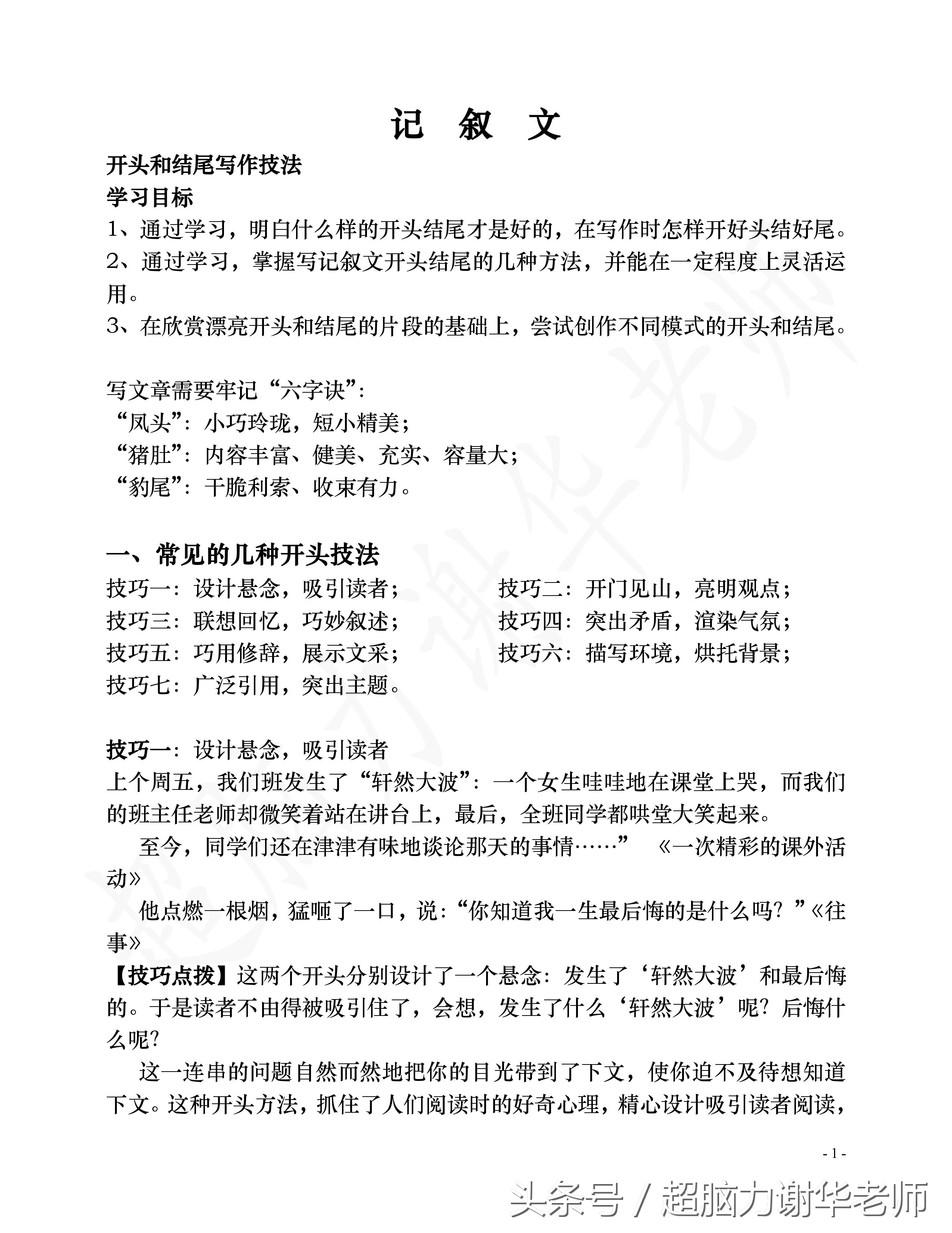 记叙文开头结尾写作技巧 (1)PPT_word文档