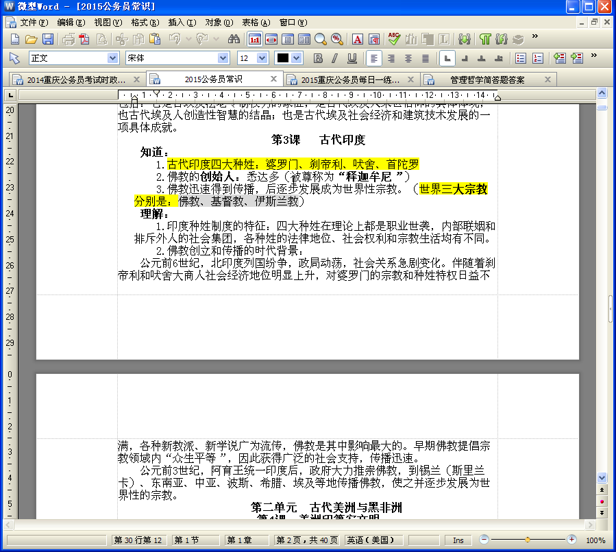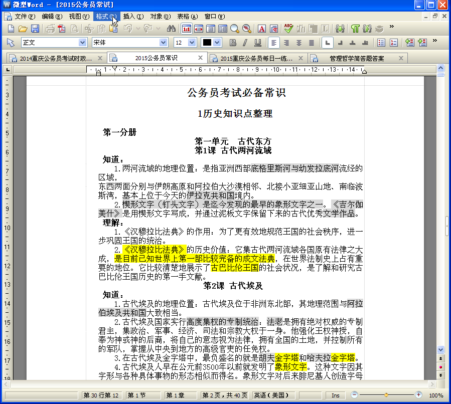 2012公务员考试常识(绝对全)