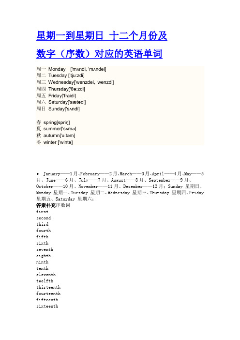 初中英语常识星期一到星期日月份及数字地英语单词.doc