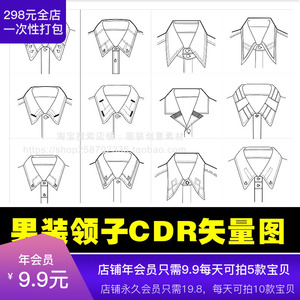 式图绘制基础男装衬衫领子细节CDR款式图素