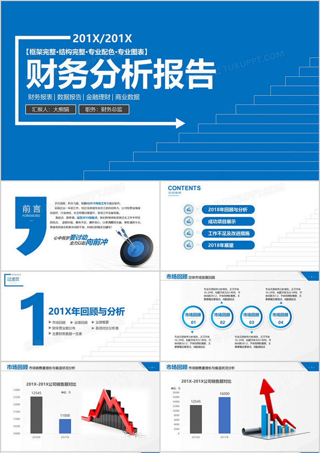 蓝色商务汇报财务分析报告PPT模板下载_26页_商务熊猫办公