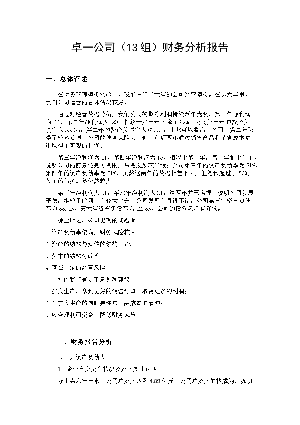 财务管理课作业--沙盘模拟经营财务分析报告.docx