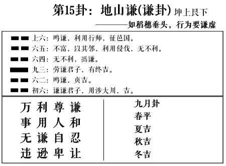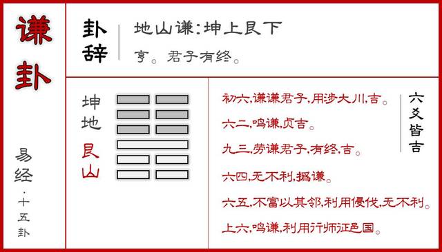 周易第15卦:地山谦(谦卦)求恋爱姻缘、婚姻感情、工作事业运势