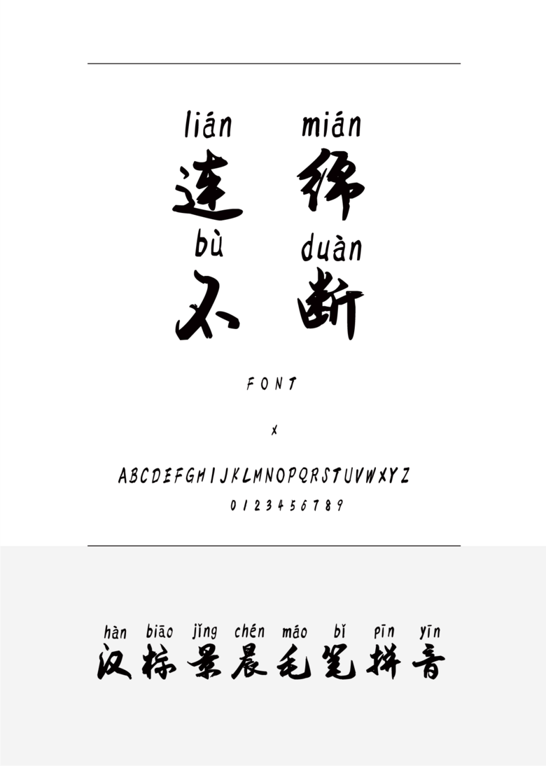 汉标景晨毛笔拼音书法\/手写简体中文ttf字体