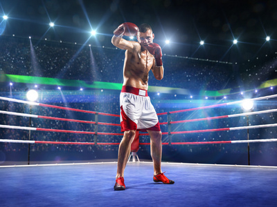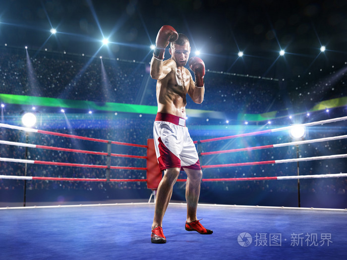 职业拳击手站在圆环上
