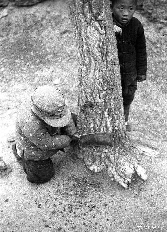 1942年,中国大饥荒,人在各种吃树皮。Photo by 哈里森·福尔曼