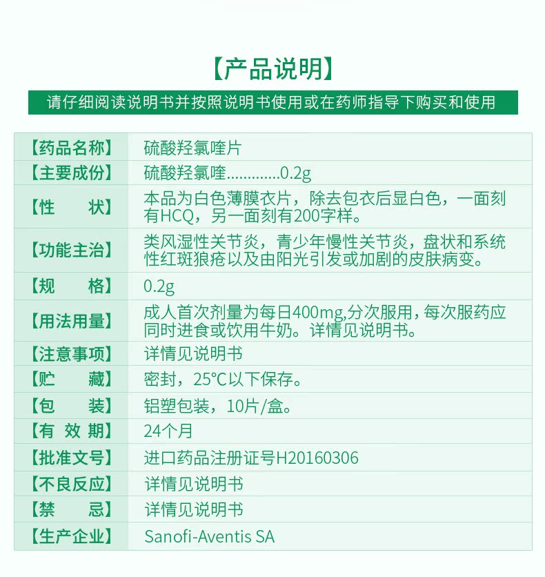 赛能硫酸羟氯喹片_说明书_价格_作用_