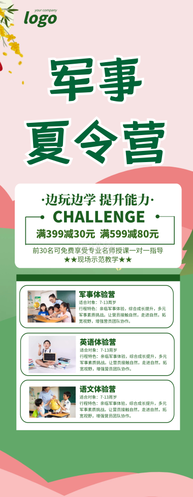 绿色简约风军事夏令营易拉宝