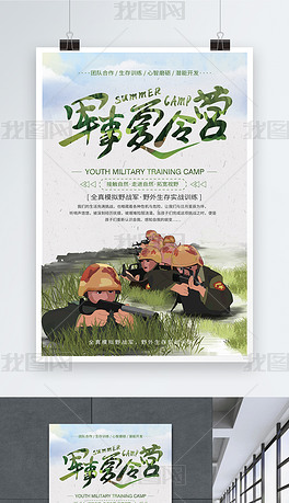 简约军事夏令营海报矢量图免费下载_psd