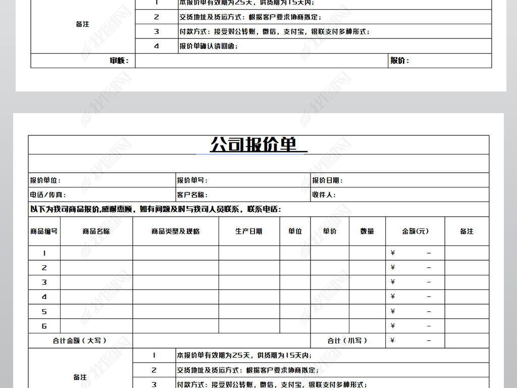 excel产品报价单表格模板