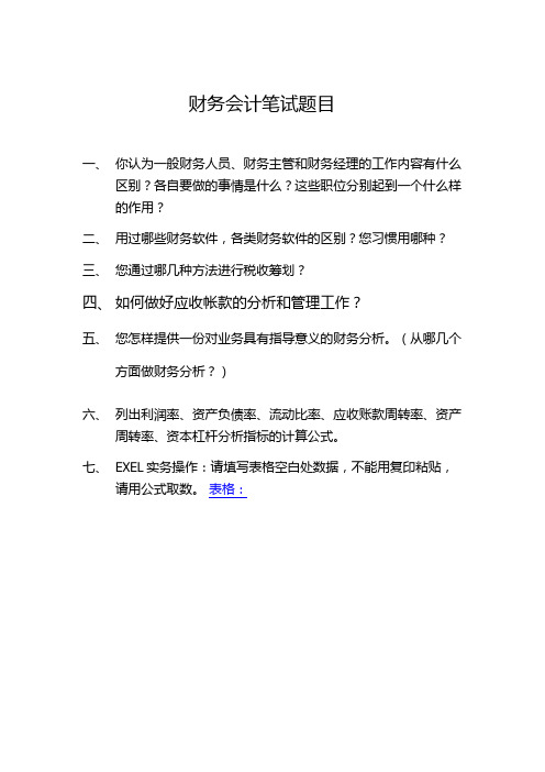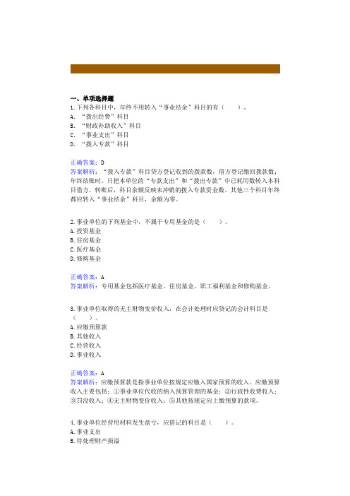 事业单位财务岗笔试题