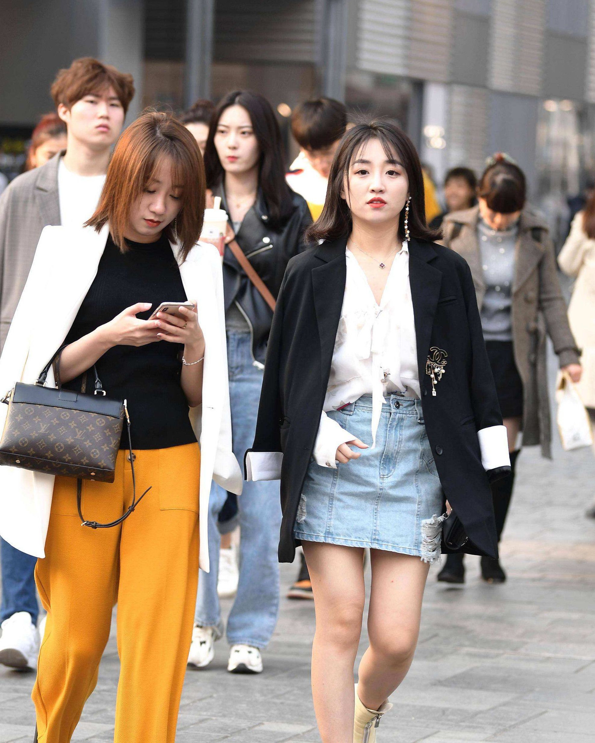 街拍:两个美女一起逛街,长相有点像韩国人,气质不凡|美女|韩国人|长相_