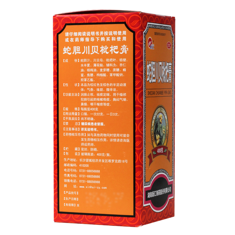 新汇蛇胆川贝枇杷膏400克润肺化痰止咳嗽咽喉干痒胸闷气喘感冒药新汇