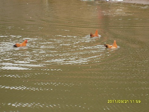 见过鸡游泳么?