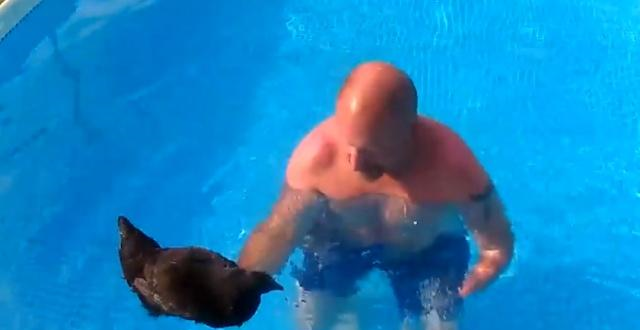 鸡会游泳吗?老外将一只鸡扔水里,真是开