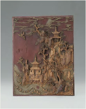 1291 清乾隆 粉彩海屋添筹图嵌瓷描金漆香盘