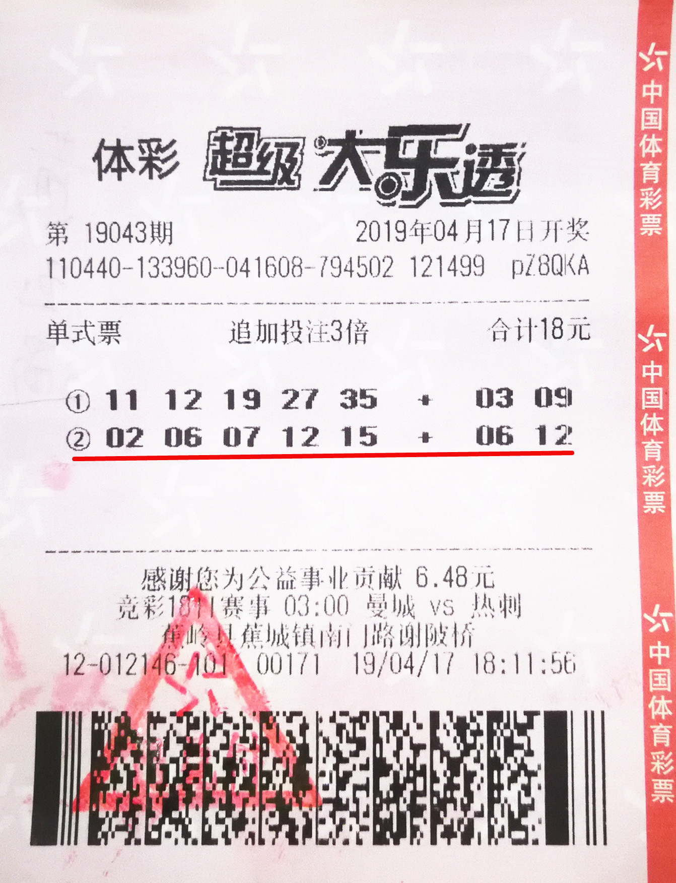 大乐透机选一注