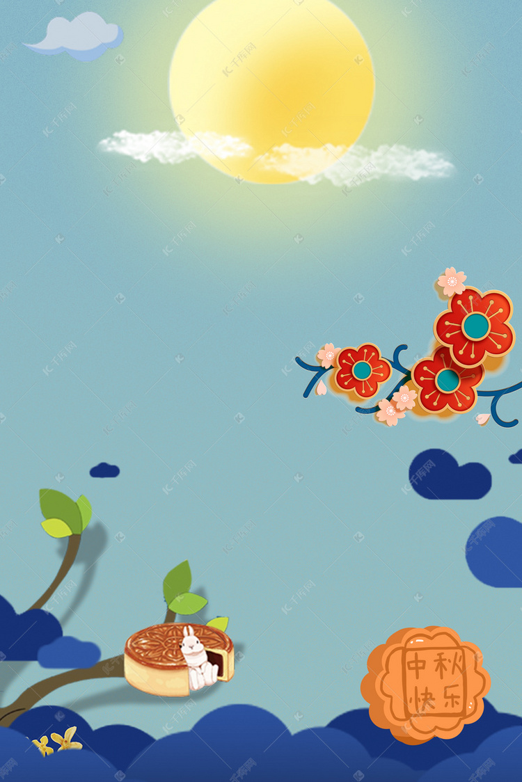 中秋佳节月亮玉兔手绘海报背景图片免费下载