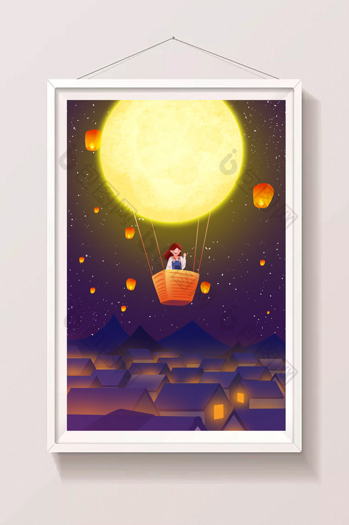 卡通梦幻中秋节坐着月亮飞天插画】图片下载-包图网