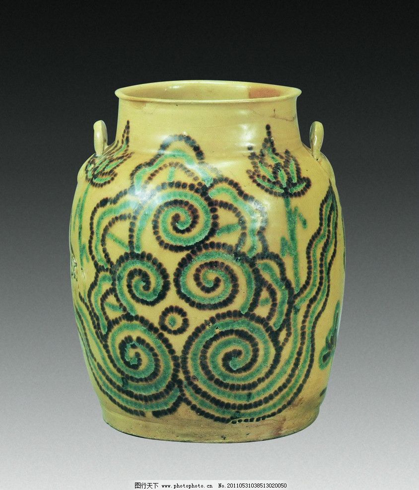 唐代长沙窑彩绘云纹双耳罐图片